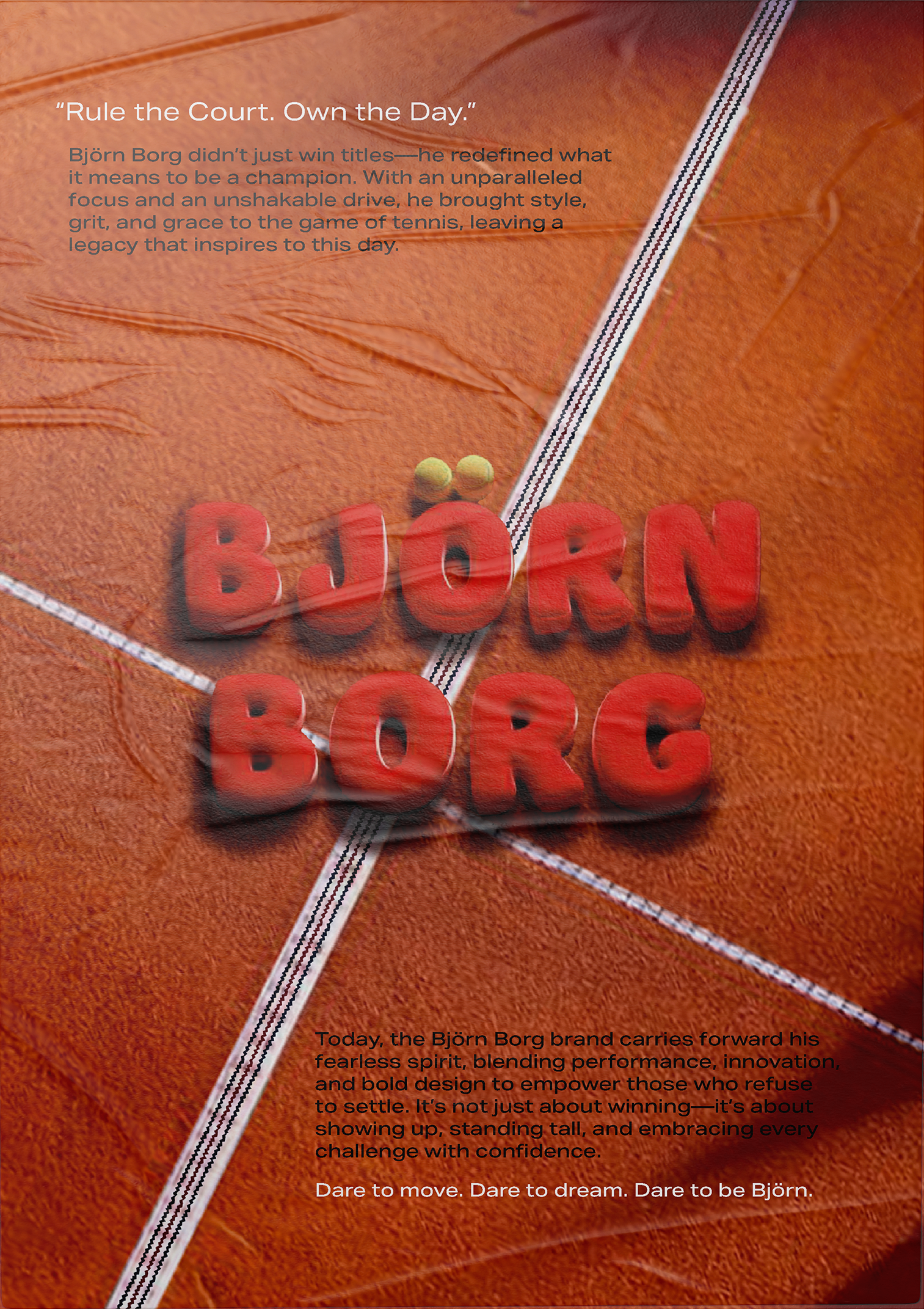 Letters designed to resemble tennis balls, reinforcing the company's strong connection to the sport in which Björn Borg himself achieved greatness.
